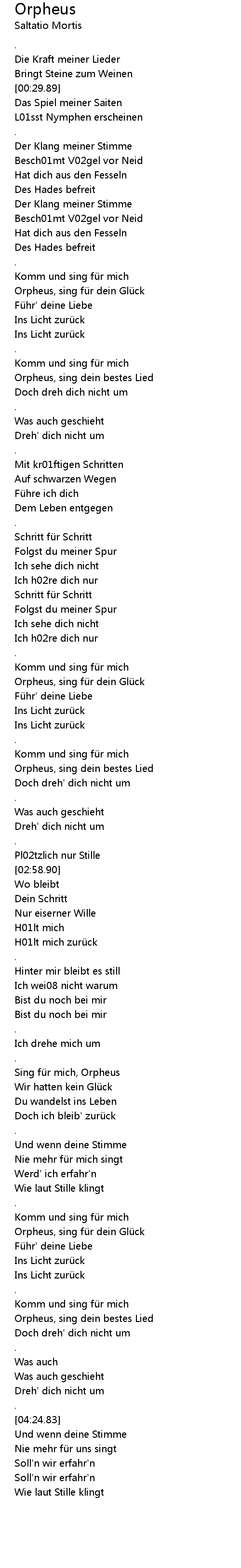 | [03:54.59] | Orpheus, sing fü r dein Glü ck |