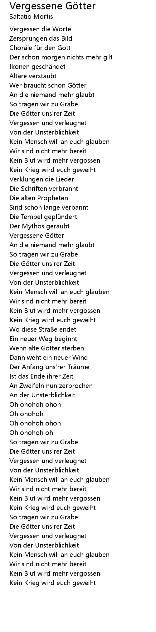 | Song | Vergessene Götter |