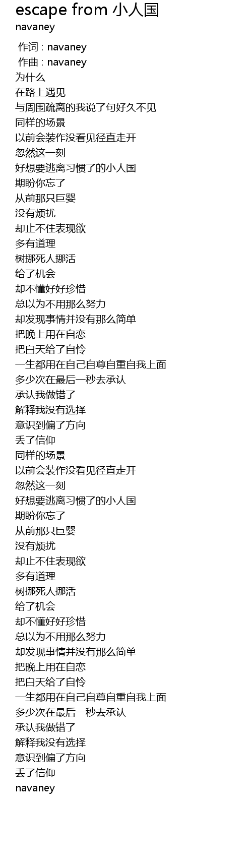 | [01:54.937] | 好想要逃离习惯了的小人国 |