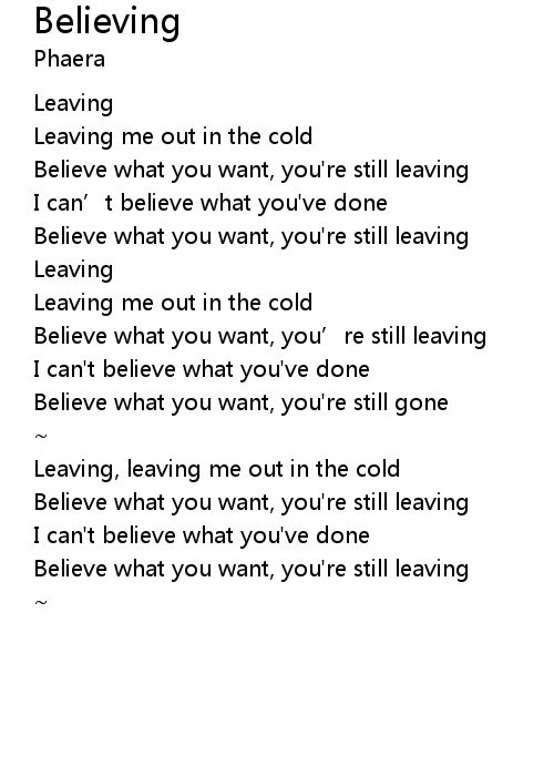 | [00:15.60] | Believe what you want, you're still leaving |