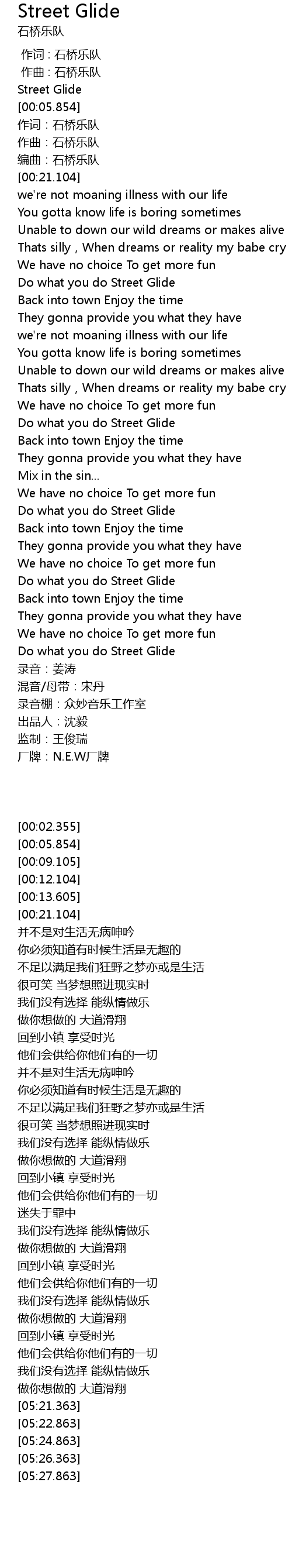 | [00:01.000] | 作曲 : 石桥乐队 |