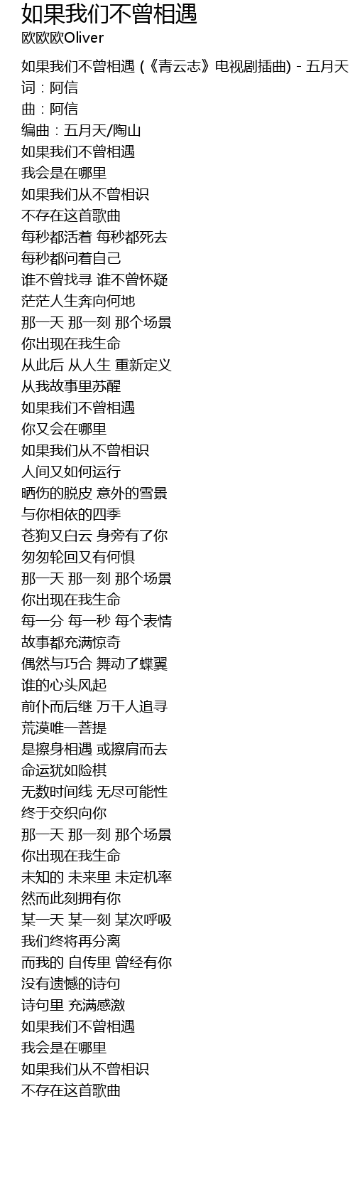 | [00:02.202] | 如果我们不曾相遇 (《青云志》电视剧插曲) - 五月天 |