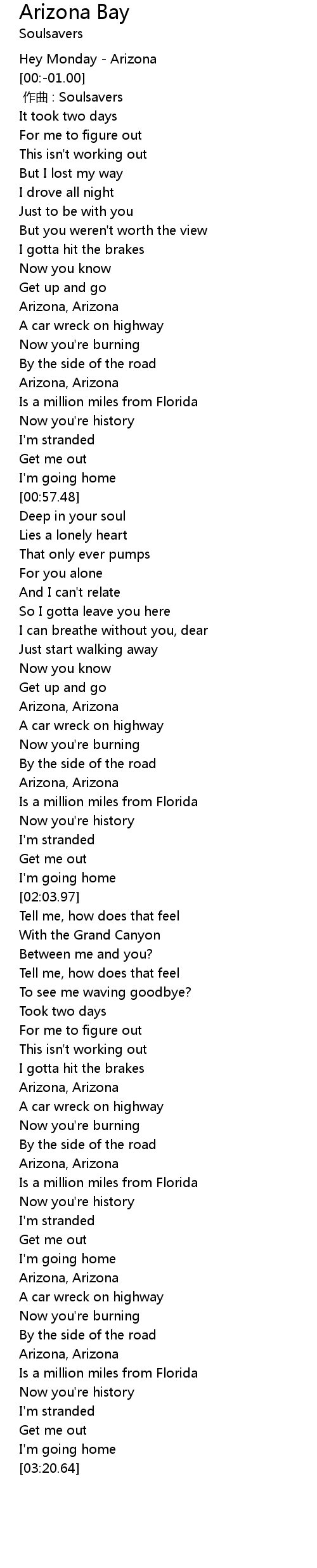 | [02:41.40] | Arizona, Arizona |