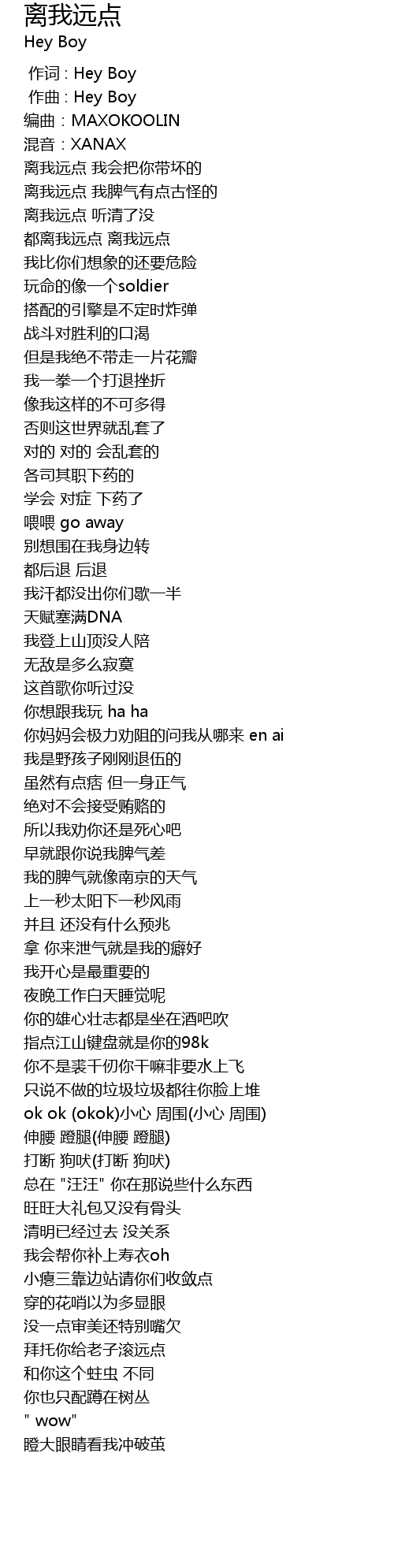 | [00:17.063] | lí wǒ yuǎn diǎn wǒ pí qì yǒu diǎn gǔ guài de |