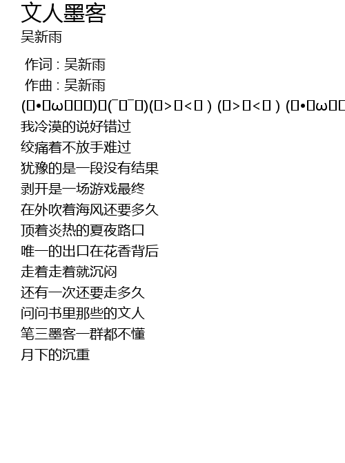 | [00:00.000] | zuò cí : wú xīn yǔ |