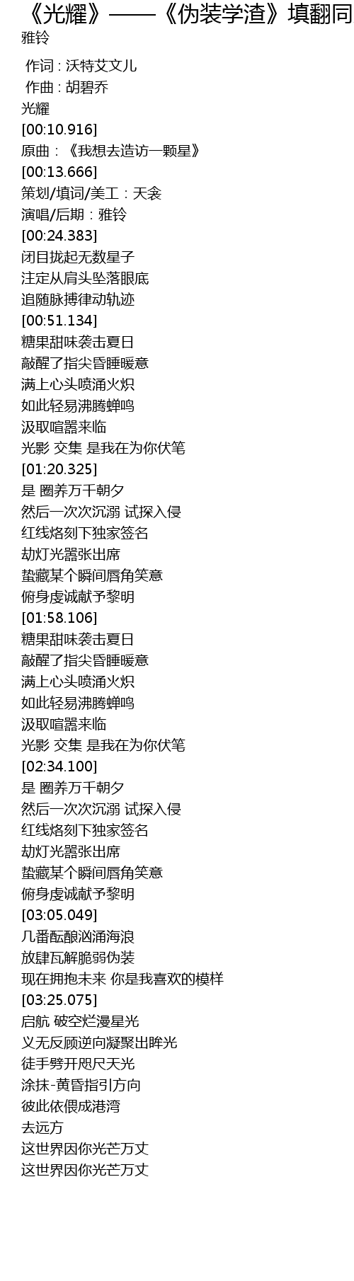 | [00:16.166] | 策划/填词/美工:天衾 |