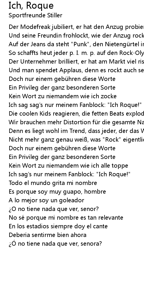 | Ich sag sag' s nur meinem Fanblock: " Ich Roque!" | |