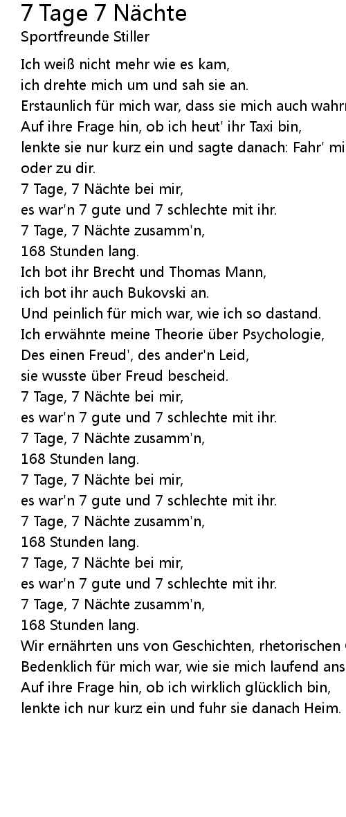 | 7 Tage, 7 N chte zusamm' n, | |