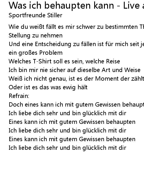 | Song | Was ich behaupten kann - Live aus der Olympiahalle München am 26.05.04 |