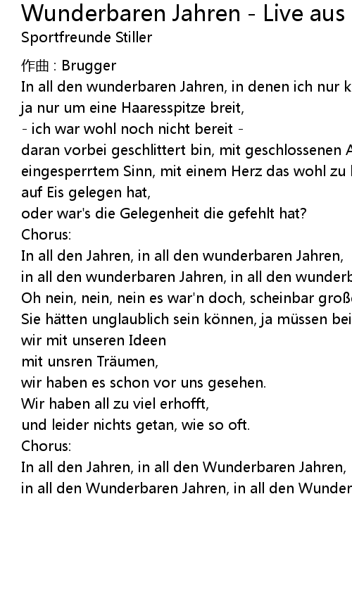 | in all den Wunderbaren Jahren, in all den Wunderbaren Jahren. |