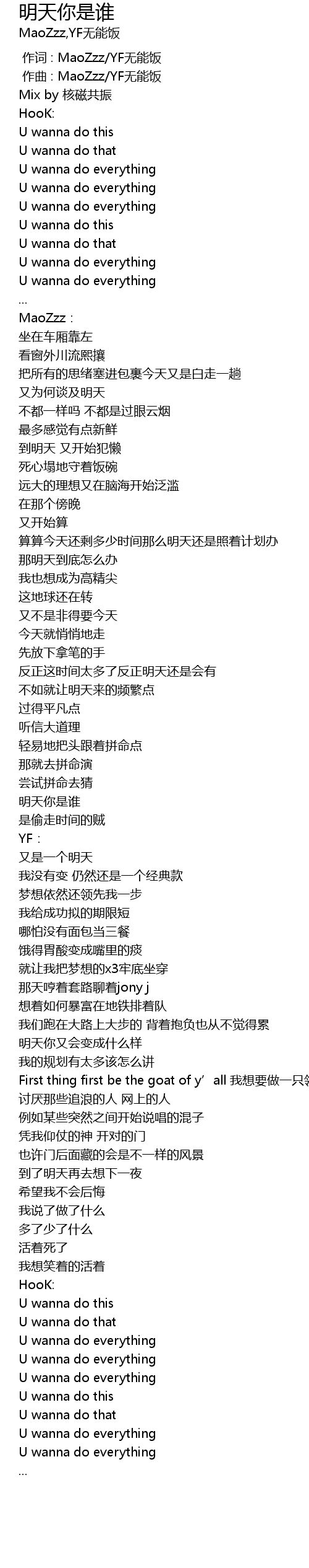 | [00:00.000] | 作词 : MaoZzz/YF无能饭 |