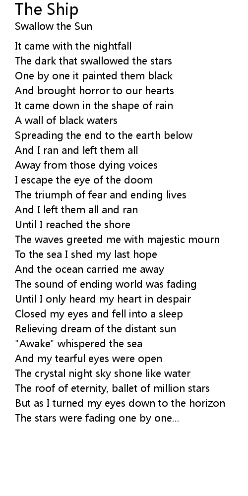 To the sea I shed my last hope |