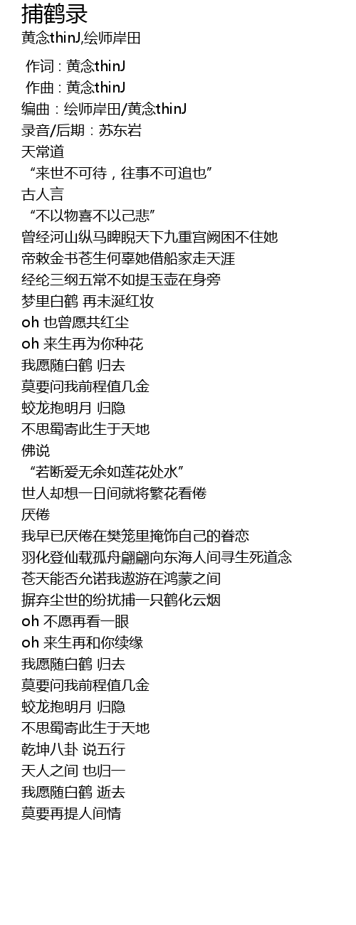 | [02:37.909] | 摒弃尘世的纷扰捕一只鹤化云烟 |