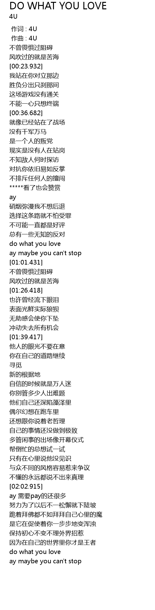 | [02:01.417] | 不懂的永远都说不出来真理 |