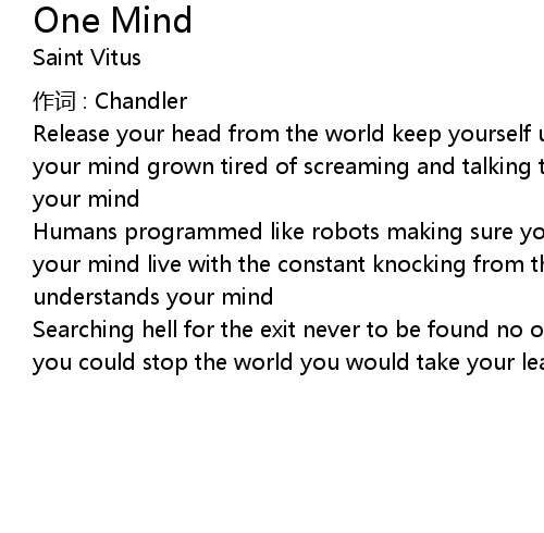 | Release your head from the world keep yourself underground no one understands your mind grown tired of screaming and talking to the walls no one understands your mind | |