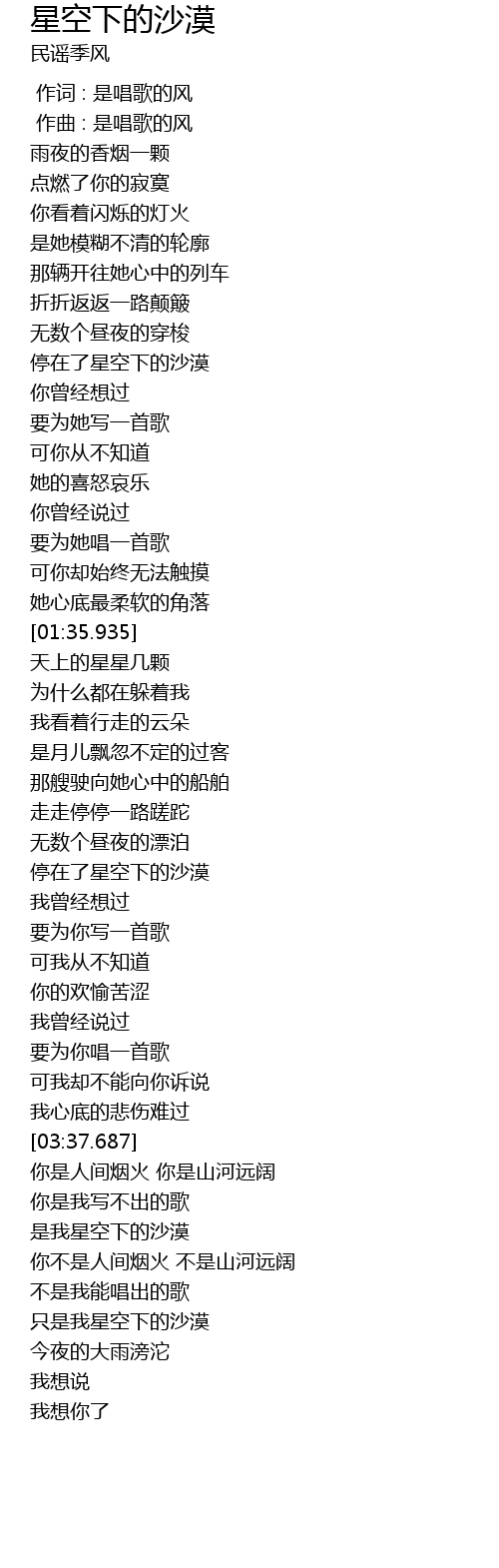| [00:49.685] | tíng zài le xīng kōng xià de shā mò |