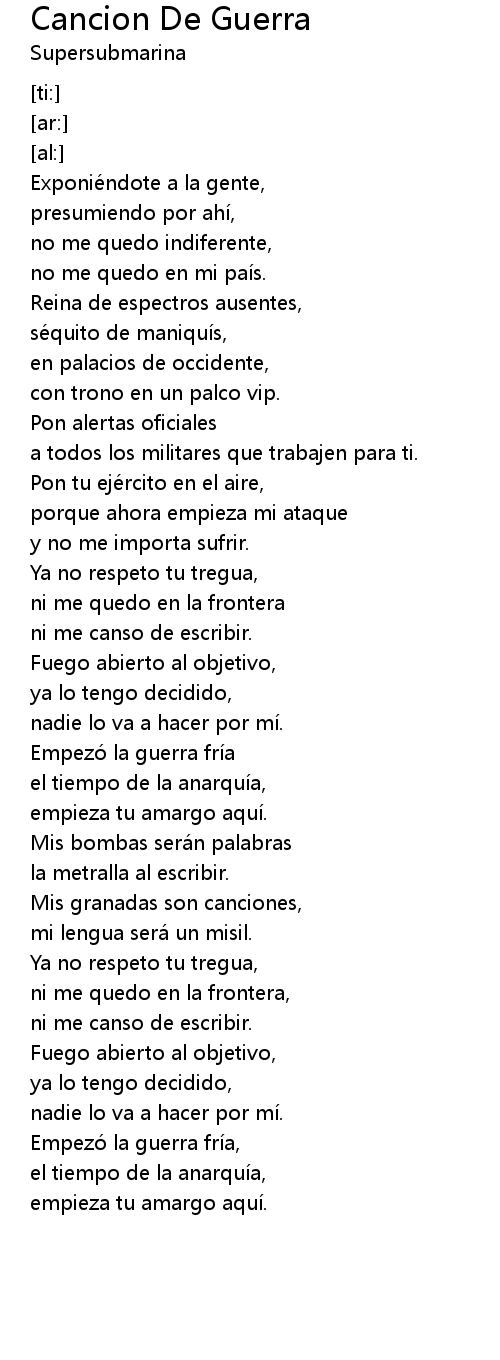 | [00:57.65] | Pon tu ejé rcito en el aire, |