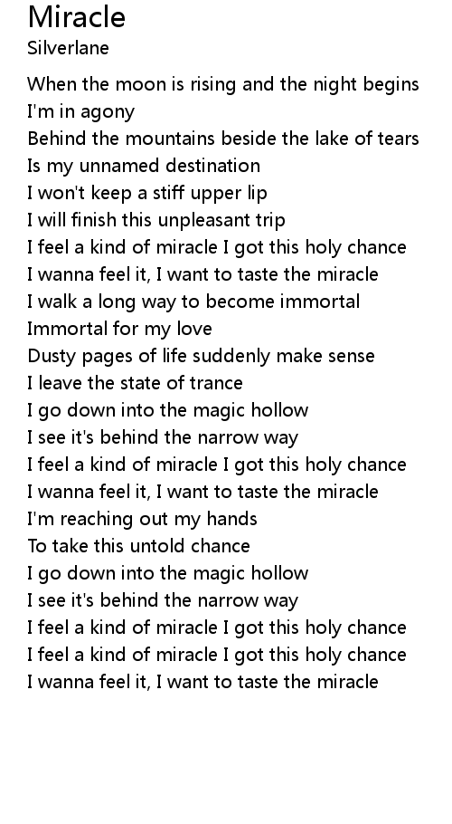 I wanna feel it, I want to taste the miracle |