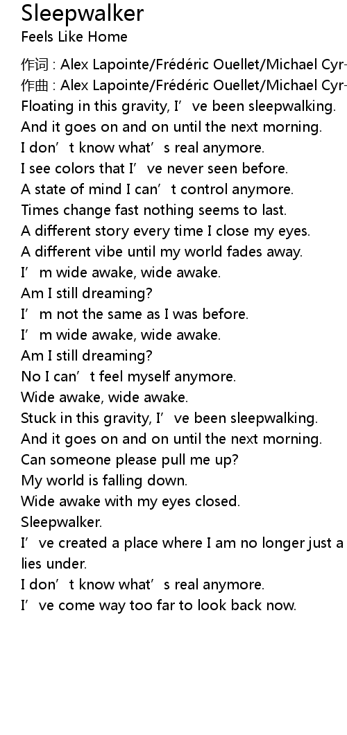 | Floating in this gravity, I' ve been sleepwalking. | |
