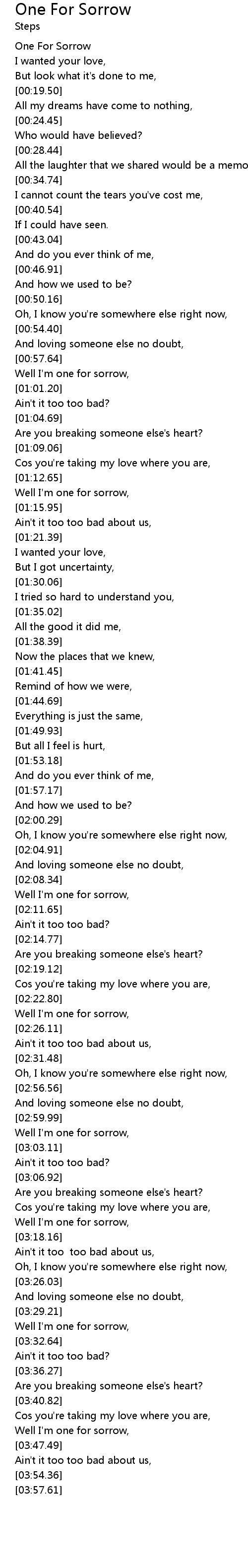 Well I'm one for sorrow, |