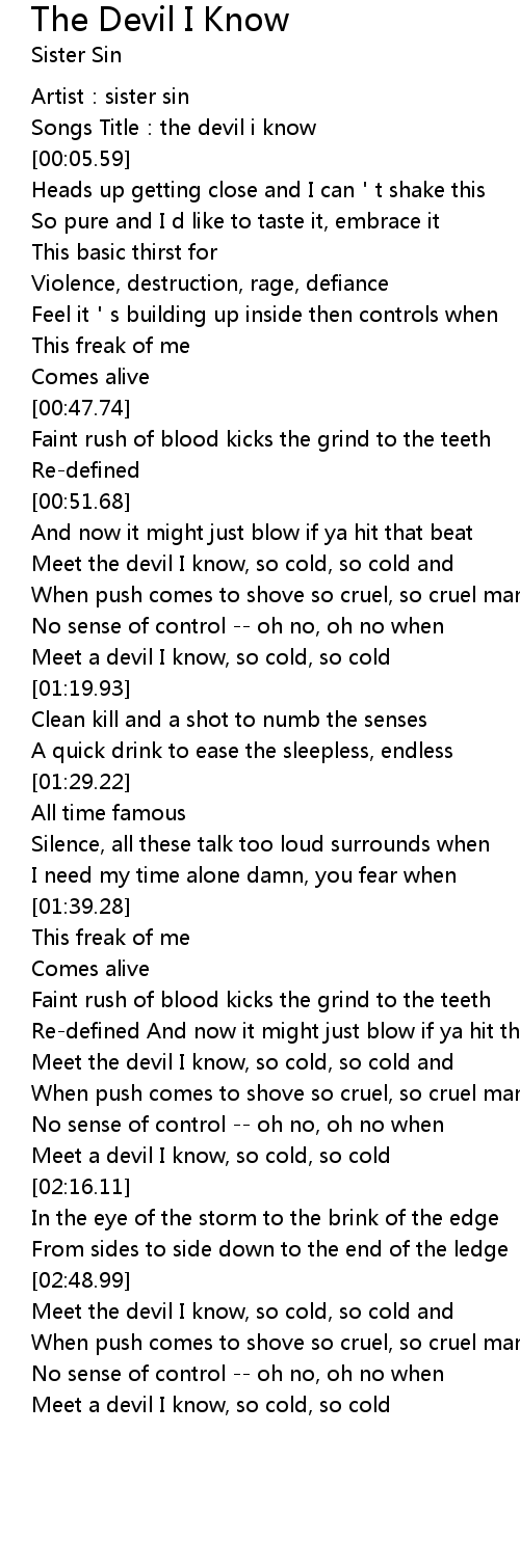 | [00:02.90] | Songs Title: the devil i know |