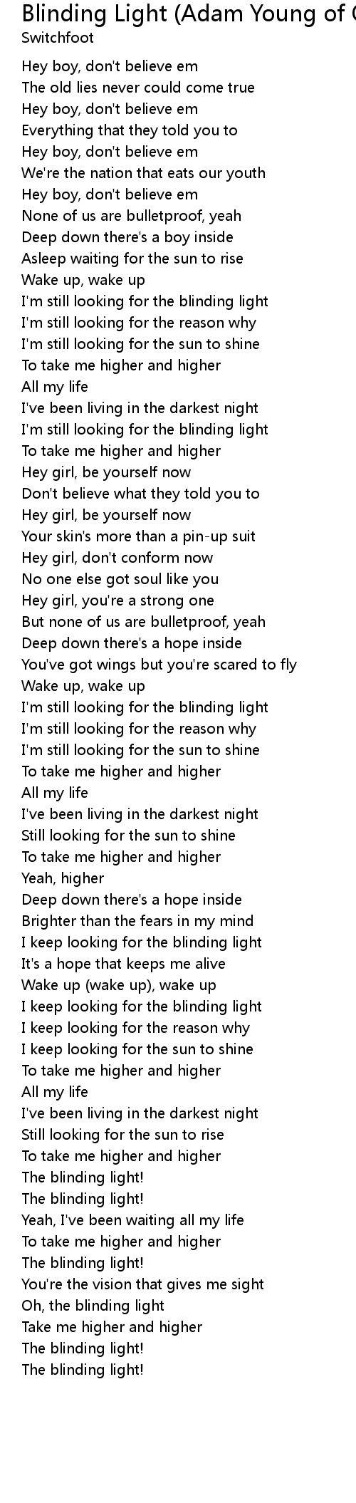 I'm still looking for the blinding light |