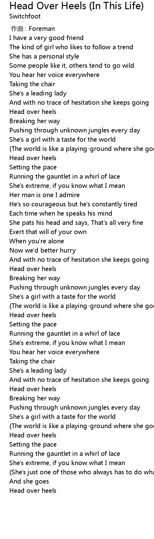 | [00:57.05] | Head over heels |