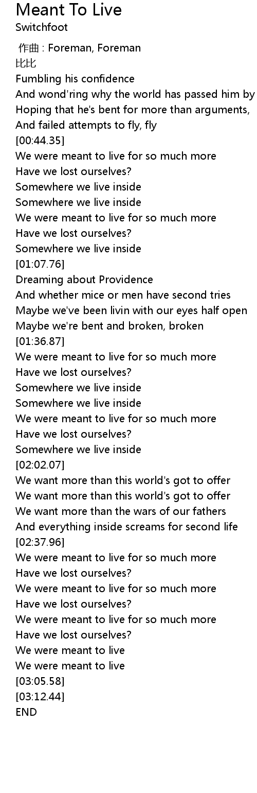 | [01:30.13] | Maybe we're bent and broken, broken |
