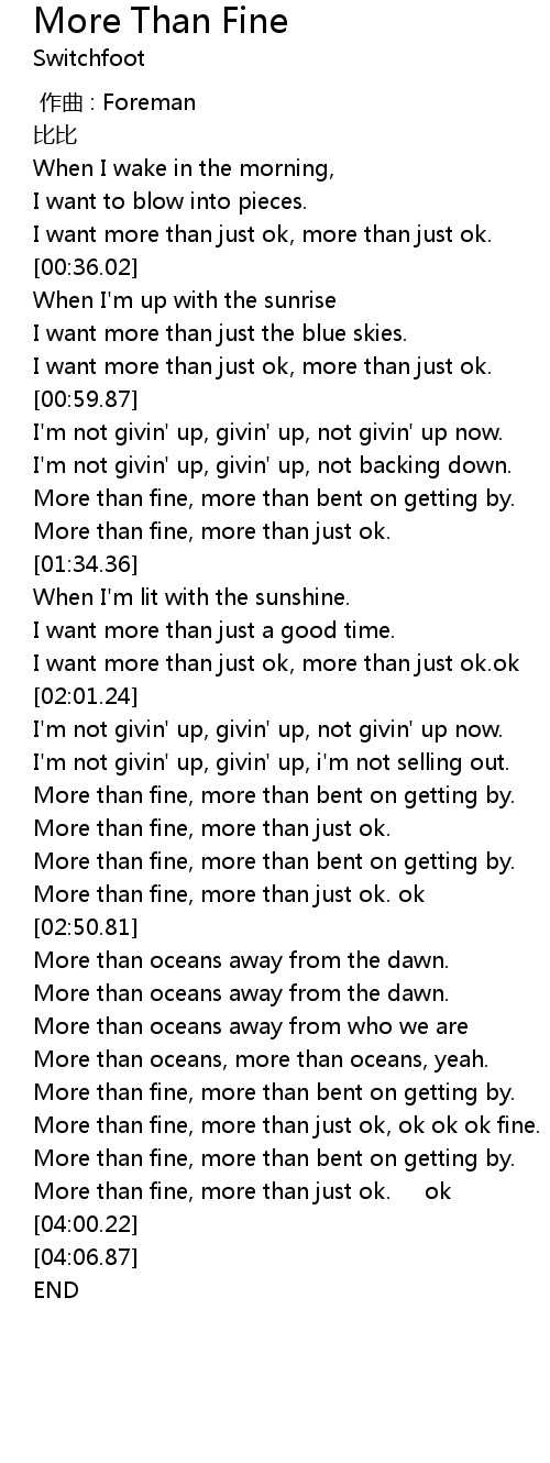 | [03:29.59] | More than fine, more than just ok, ok ok ok fine. |