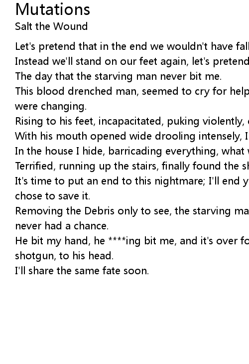 Removing the Debris only to see, the starving man behind me, as he pounced I never had a chance. |