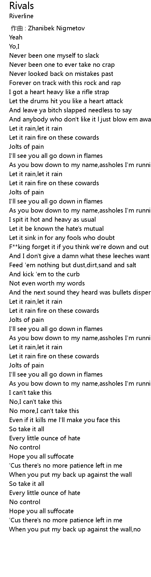 | [01:02.000] | Let it rain fire on these cowards |