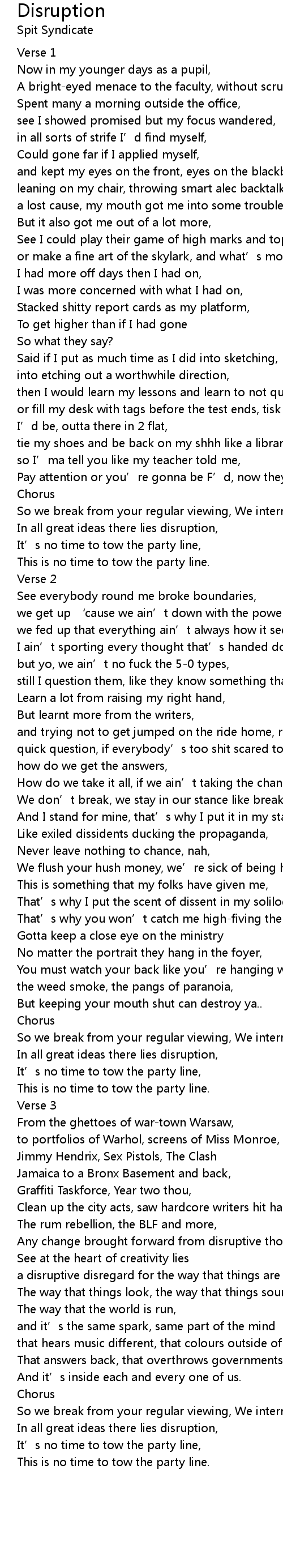 | Song | Disruption |