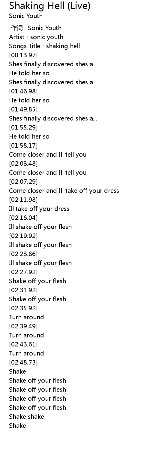 | [00:00.00] | 作词 : Sonic Youth |