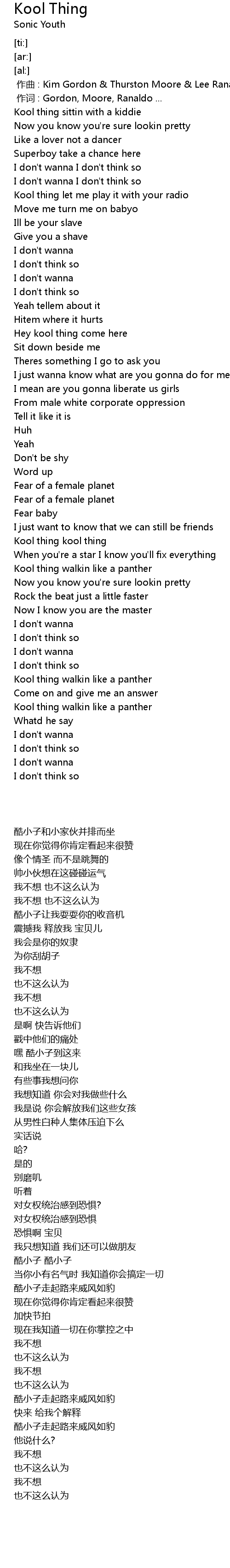| [00:01.00] | 作词 : Gordon, Moore, Ranaldo ... |