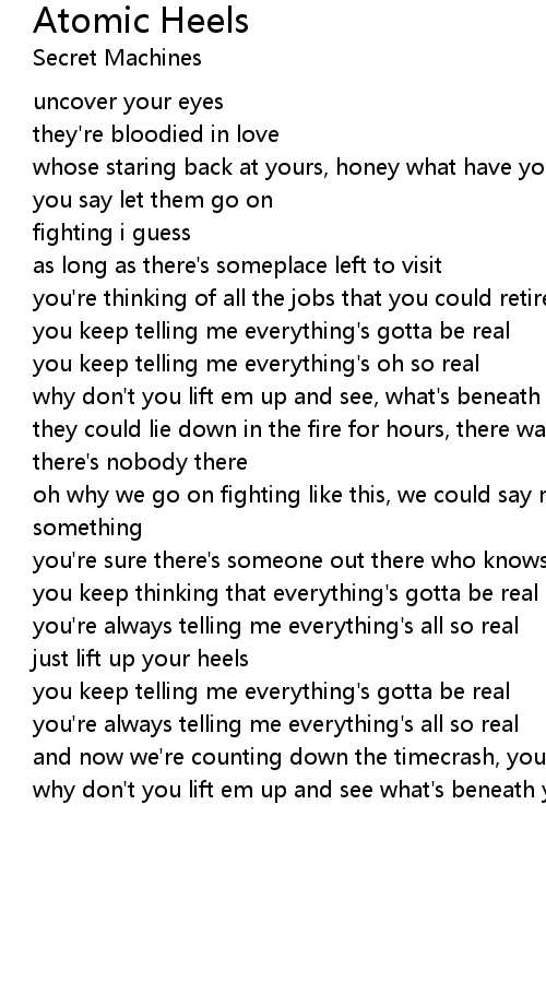 why don't you lift em up and see, what's beneath your atomic heels? |