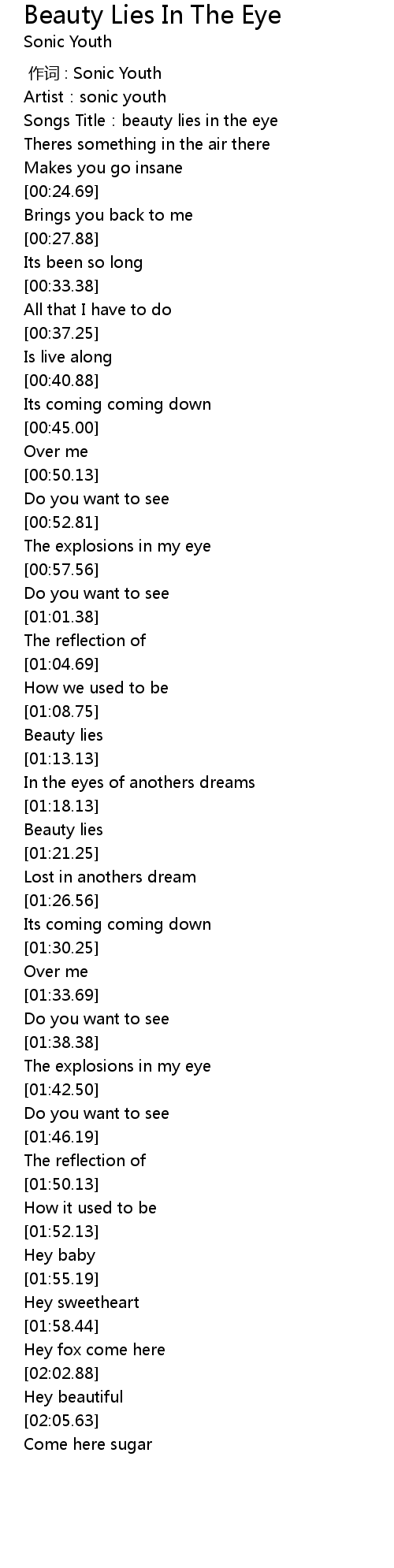 | [00:08.86] | Songs Title: beauty lies in the eye |