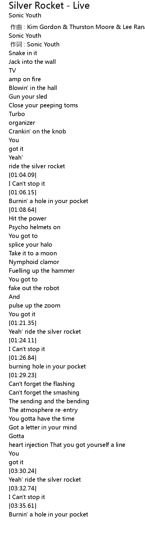 | [00:01.00] | 作词 : Sonic Youth |