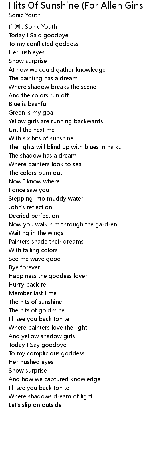 | Song | Hits Of Sunshine (For Allen Ginsberg) |