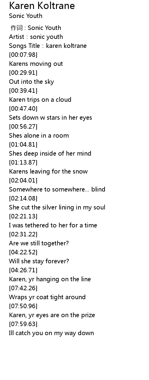 | [00:04.53] | Songs Title:karen koltrane |