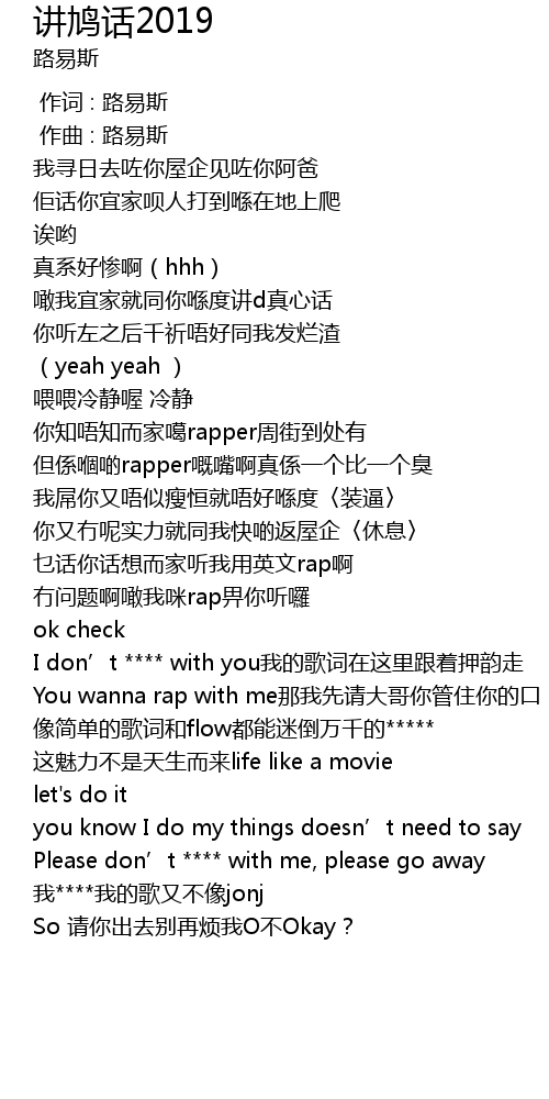 | [00:48.916] | 我屌你又唔似瘦恒就唔好喺度〈装逼〉 |