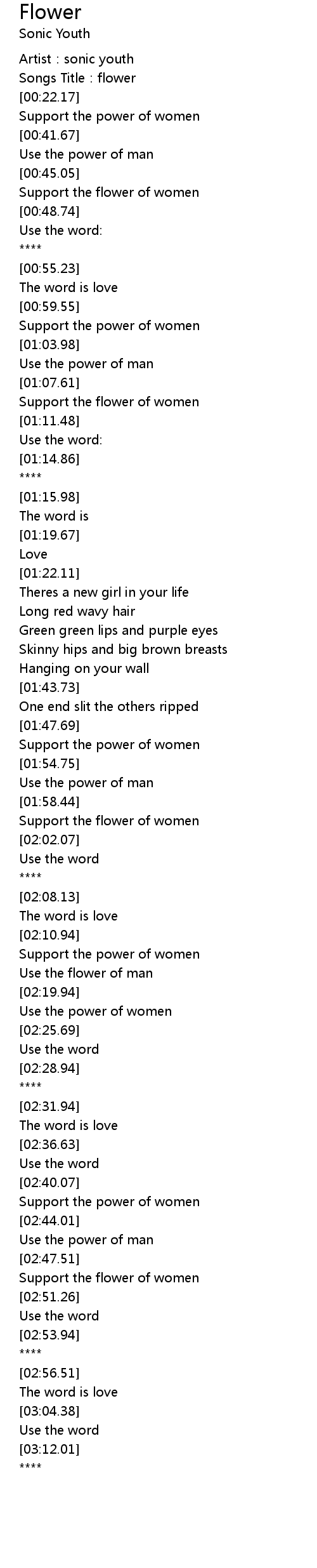 | [00:01.67] | Artist: sonic youth |
