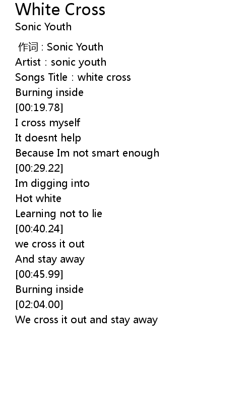 | [00:08.72] | Songs Title: white cross |
