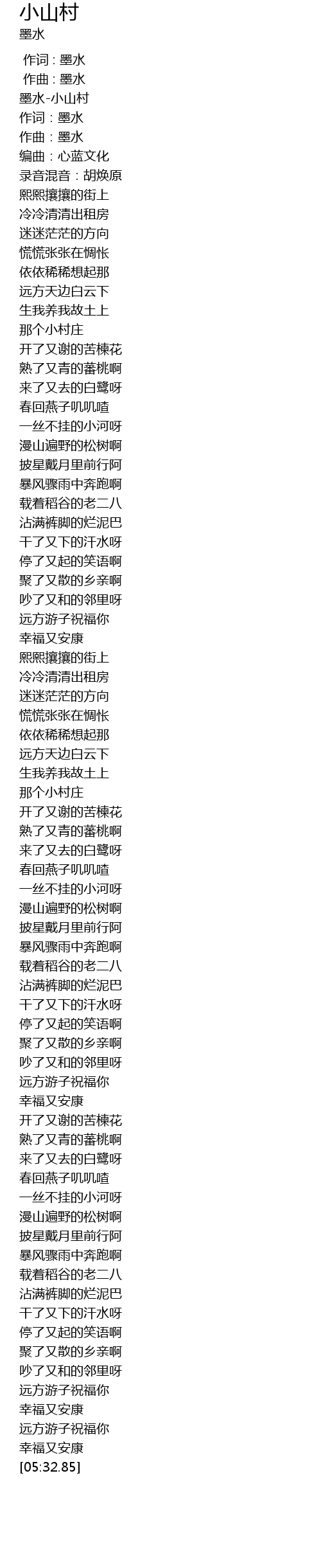 | [00:17.55] | 墨水-小山村 |