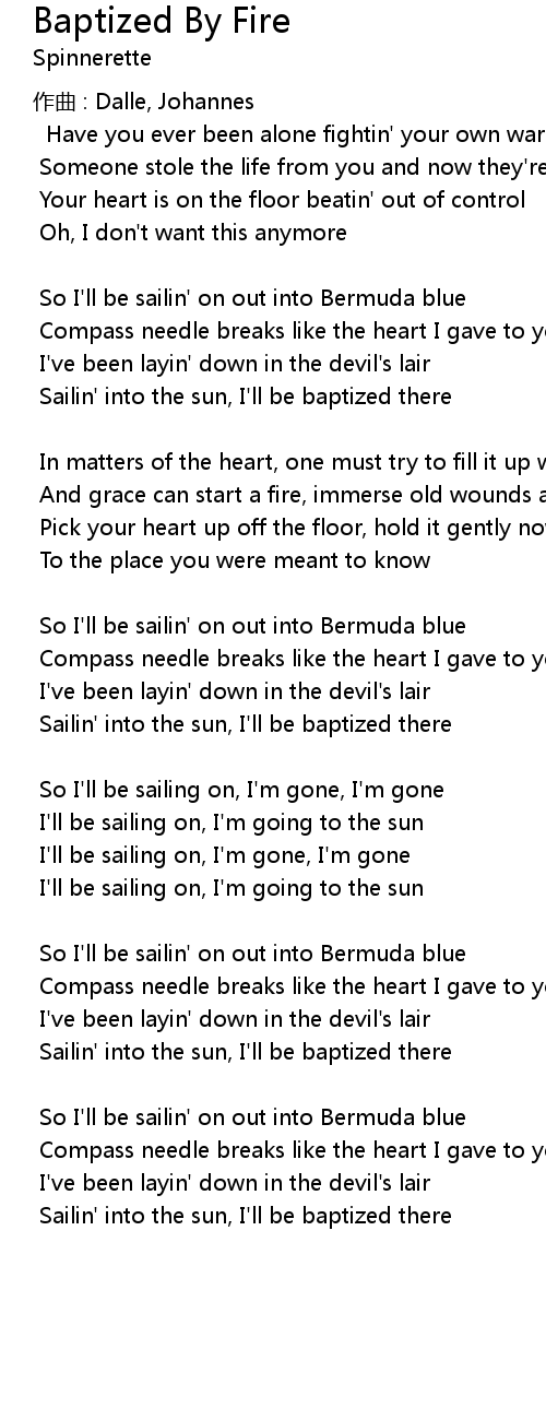 | Song | Baptized By Fire |