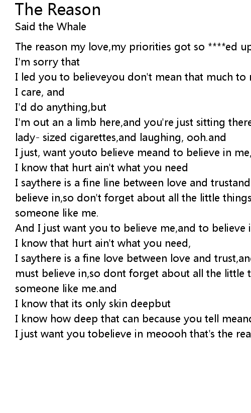 I just want you tobelieve in meoooh that's the reason, my love. |