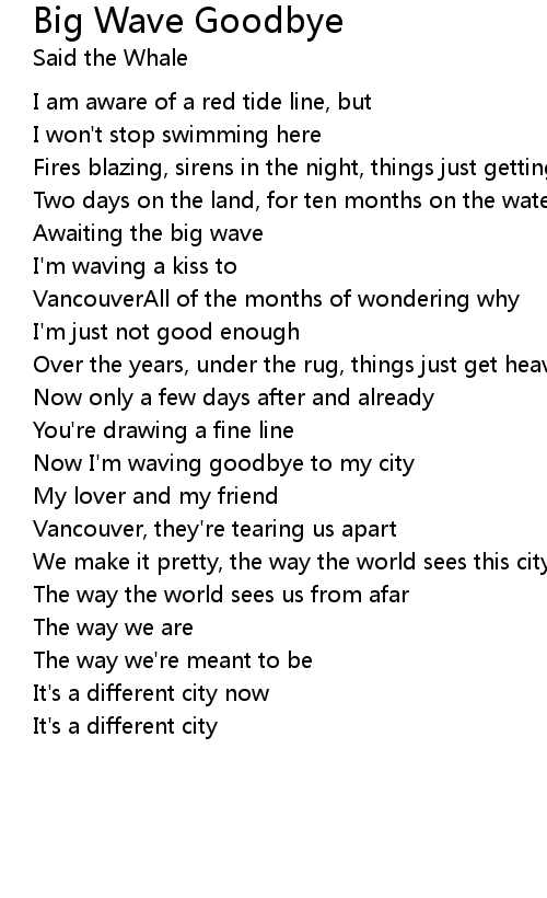 Now I'm waving goodbye to my city |