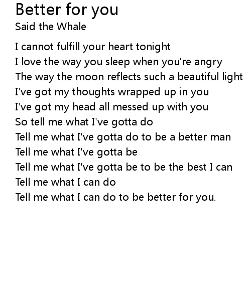 | Song | Better for you |
