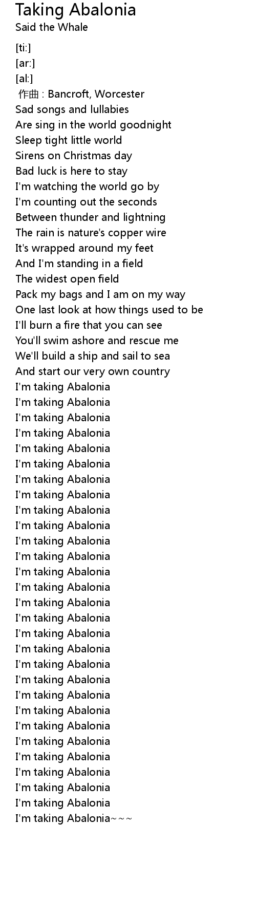 | [02:44.53] | I' m taking Abalonia |