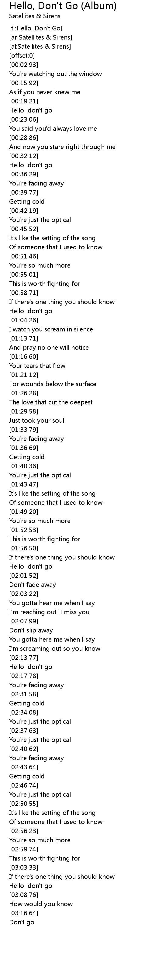 [ti:Hello, Don't Go] |