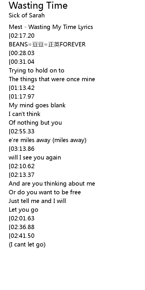 | [00:01.89] | Mest - Wasting My Time Lyrics |